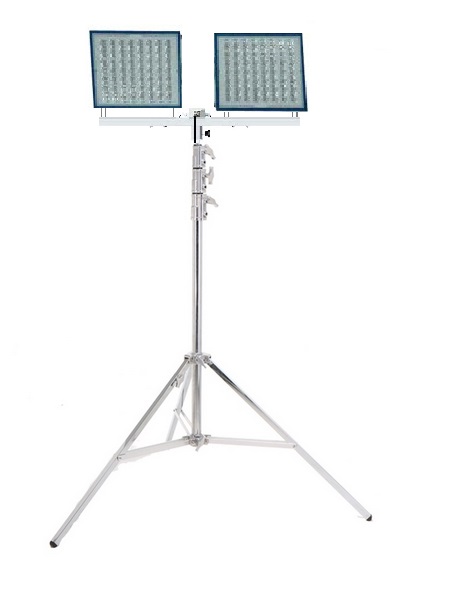 交流移動(dòng)照明由2盞90W高亮度LED投光燈頭組成。桿體采用3節(jié)伸縮桿作為升降調(diào)節(jié)方式,升起高度2.8米;每盞燈可單獨(dú)做上下、左右調(diào)節(jié),整個(gè)燈盤以伸縮氣桿為軸心做360°水平旋轉(zhuǎn)。