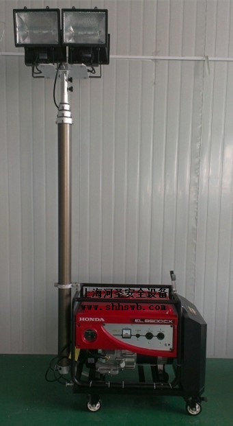 一體化移動照明系統(tǒng)設計:由發(fā)電機、發(fā)電機底盤、氣動升降燈桿、4個1000W碘鎢燈、控制箱、移動輪等幾大部分組成。