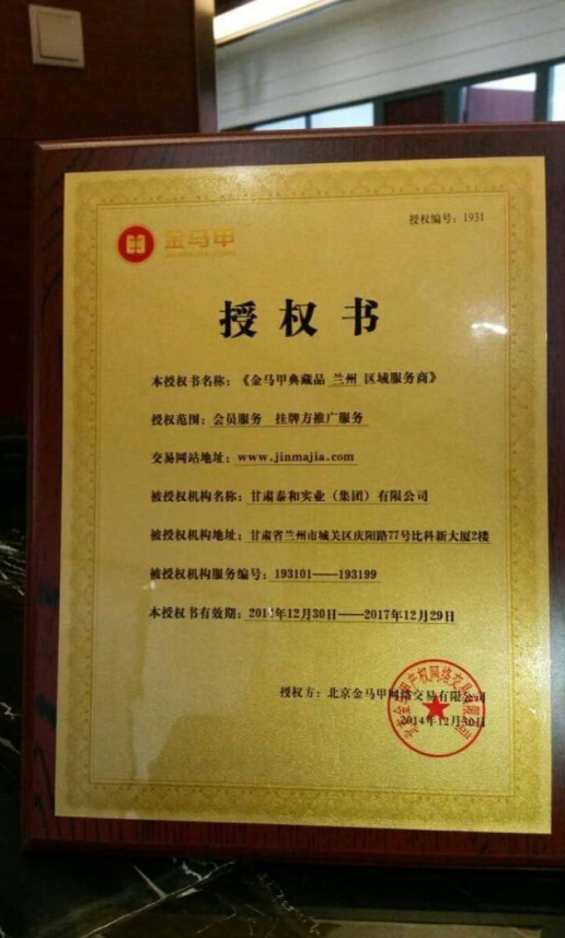 2014年12月,泰和集團正式與金馬甲簽約,成為甘肅第一家一級服務(wù)商,為廣大客戶提供一個咨詢、申購、交易的平臺,將這項前景無限的新興產(chǎn)業(yè)推廣到全國各個角落。