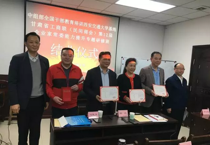 甘肅省工商聯(lián)(民間商會(huì))新一屆領(lǐng)導(dǎo)班子和領(lǐng)導(dǎo)機(jī)構(gòu)成員能力提升專題研修班于10月23日至27日在中組部中組部全國(guó)干部教育培訓(xùn)西安交通大學(xué)成功舉辦。甘肅省工商聯(lián)(民間商會(huì))副會(huì)長(zhǎng)、我司董事長(zhǎng)張建忠參加了此次專題研修班。