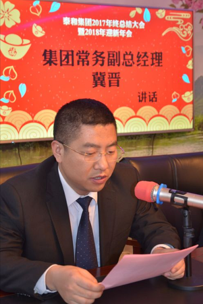 非常感謝大家在過去的一年里對(duì)泰和集團(tuán)的支持與信任,感謝和我們一路走來的每一位員工,是大家的努力和堅(jiān)持,讓泰和集團(tuán)取得今天的成就,我代表集團(tuán)公司向在座的全體同仁們致以最崇高的敬意和衷心的感謝!