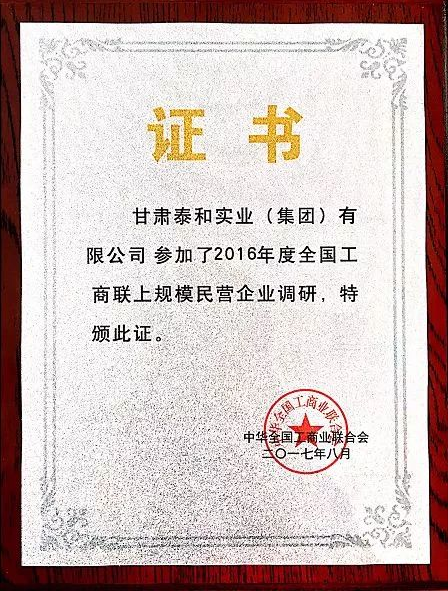 為了反映中國民營經(jīng)濟發(fā)展情況,全國工商聯(lián)開展第十八次上規(guī)模民營企業(yè)普查,并在普查排序基礎(chǔ)上發(fā)布“中國民營企業(yè)500強”。我司被中華全國工商業(yè)聯(lián)合會列為2016年度上規(guī)模民營企業(yè)調(diào)研單位。