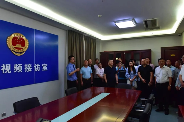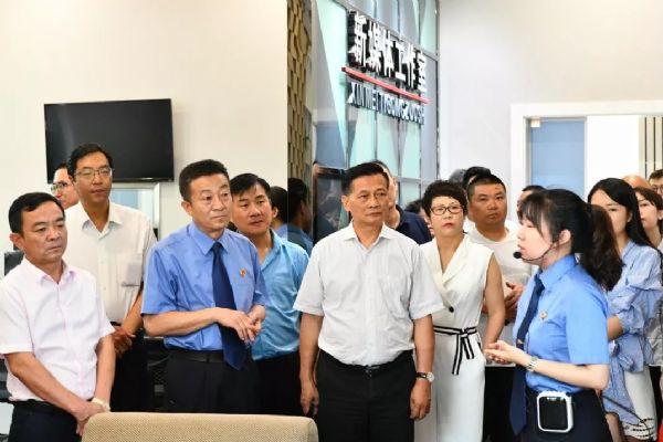 民營企業(yè)家們在市院黨組書記、檢察長張學軍和黨組成員、副檢察長蒲軍的陪同下,參觀了市院12309檢察服務中心、案管大廳、新媒體工作室、公益訴訟調查指揮中心和黨建活動中心等檢察辦公辦案場所,現(xiàn)場聽取工作人員演示講解,近距離感受檢察工作流程。代表嘉賓不時詢問檢察機關的各項工作職能,張學軍檢察長用平實易懂的語言詳細進行了解答。