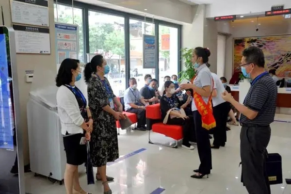 隨后,視察調(diào)研組一行參觀了市級文明單位蘭州銀行金城支行。在街道黨工委黨建集結(jié)號的引領(lǐng)下,蘭州銀行金城支行以文明精神引領(lǐng)業(yè)務(wù)發(fā)展,以文明力量推動經(jīng)濟(jì)管理,以文明信息指引服務(wù)前進(jìn),為居民群眾提供優(yōu)質(zhì)高效溫暖的金融服務(wù),力爭創(chuàng)建省級文明單位,代表和委員們現(xiàn)場體驗了金融行業(yè)的貼心服務(wù)。
