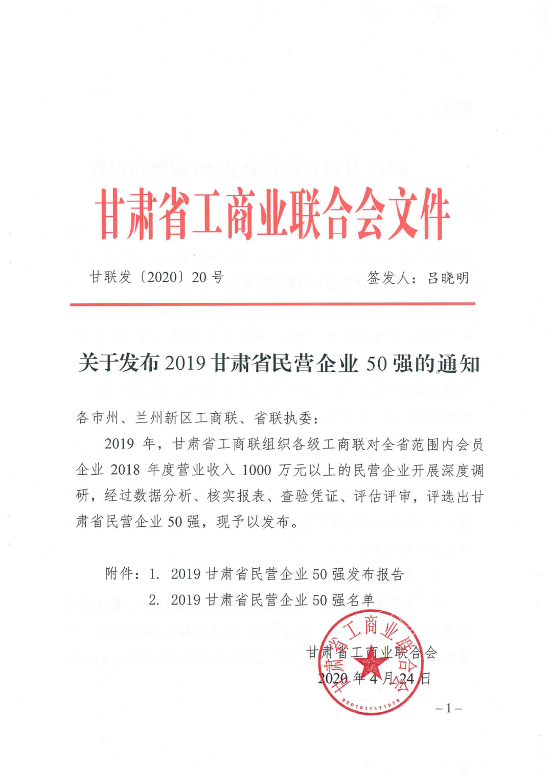 附:2019甘肅省民營企業(yè)50強(qiáng)名單