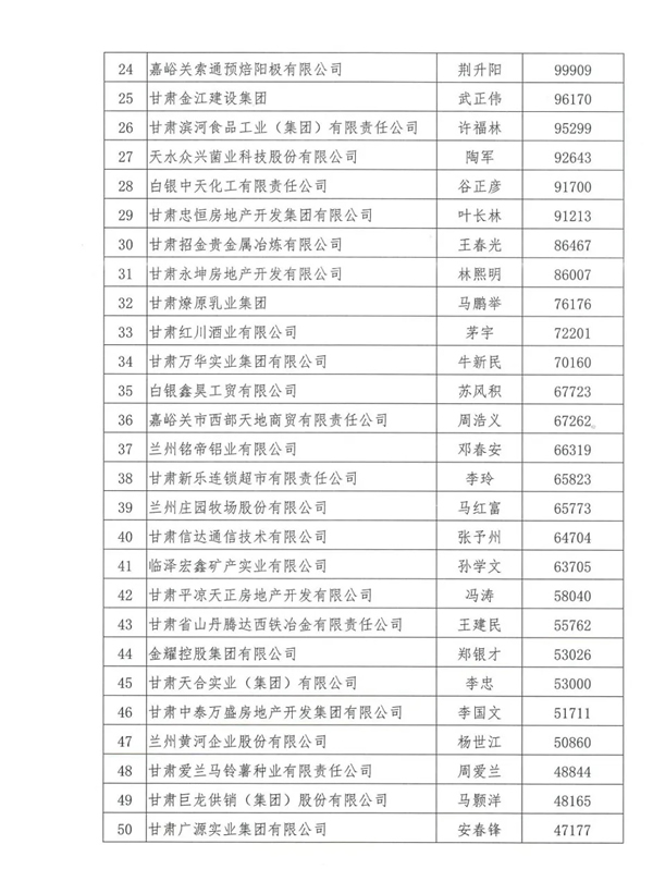 會議上,省工商聯(lián)發(fā)布了甘肅省2019年度民營企業(yè)營業(yè)收入50強(qiáng)榜單。甘肅泰和實(shí)業(yè)(集團(tuán))有限公司榮居2019年甘肅省民營企業(yè)營業(yè)收入50強(qiáng)第9位。