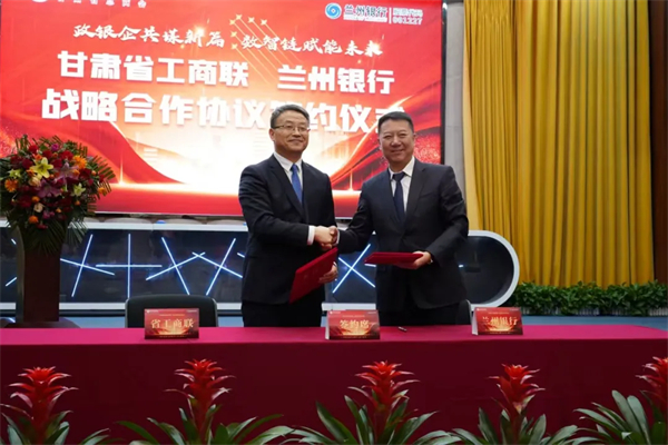 1月16日下午,甘肅省工商聯(lián)與蘭州銀行簽約儀式暨蘭銀鏈信2.0產(chǎn)品上線啟動(dòng)儀式在蘭州舉行。省工商聯(lián)主席、省總商會(huì)會(huì)長郭奇志,省委統(tǒng)戰(zhàn)部副部長,省工商聯(lián)黨組書記、常務(wù)副主席劉全平,省發(fā)改委二級(jí)巡視員孫瑞民,蘭州銀行黨委書記、董事長許建平出席會(huì)議。省工商聯(lián)黨組成員、秘書長宋學(xué)勤主持。省工商聯(lián)副主席、省總商會(huì)副會(huì)長,部分省級(jí)商會(huì)、民營企業(yè)代表,部分市州工商聯(lián)負(fù)責(zé)人共100余人參加會(huì)議。