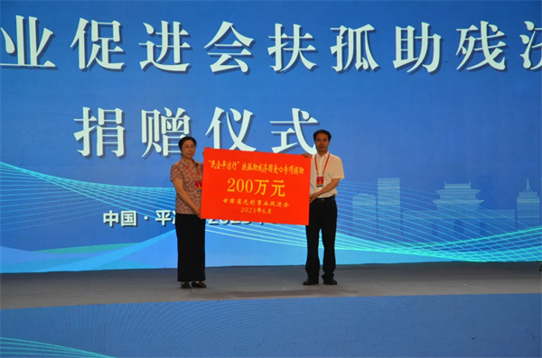 會上,省工商聯(lián)黨組成員、副主席毛赟代表省光彩事業(yè)促進(jìn)會捐助“民企平?jīng)鲂小狈龉轮鷼垵?jì)困愛心專項(xiàng)資金200萬元。甘肅飛天圣典商貿(mào)有限公司積極參與此次“結(jié)對幫扶·愛心甘肅”工程建設(shè),捐贈安心扶孤助殘濟(jì)困專項(xiàng)資金16萬元。